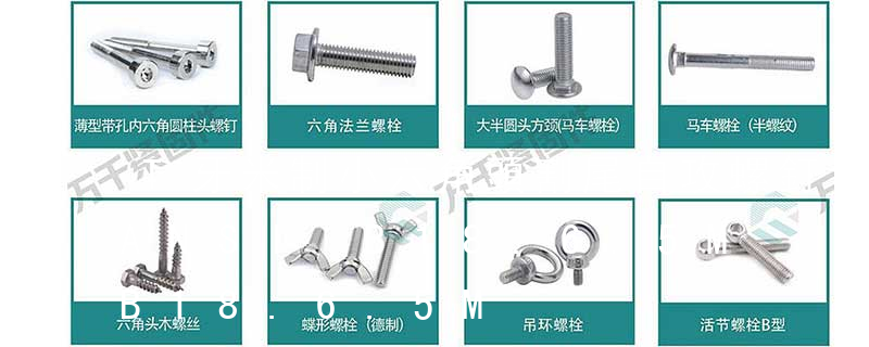 六角木牙螺絲 HEX LAG BOLTS 四角螺絲 SQUARE HEAD BOLTS T頭螺絲 T HEAD BOLTS 馬車螺絲 CARRIAGE BOLTS 環(huán)首螺絲 EYE BOLTS 內(nèi)六角孔螺絲 HEX SOCKET CAP SCREWS 固定螺絲 SET SCREWS 螺椿栓 STUD BOLTS 螺旋椿 SCREW STUDS 輪殼螺栓 WHEEL BOLTS 翼形螺絲 WING SCREWS 自攻螺絲 SELF TAPPING SCREWS 自削螺