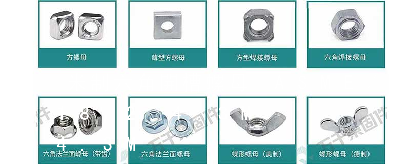 ②開槽螺母:主要指六角開槽螺母,即在六角螺母上方加工出糟。它與螺桿帶孔螺栓和開口銷配合使用,以防止螺栓與螺母的相對轉動,見GB6178—6181等。③鎖緊螺母:指具有鎖緊功能的螺母,有尼龍嵌件六角鎖緊螺母,見GB889、GB6182、GB6183和全金屬六角鎖緊螺母,見GB6184—6187。④特殊用途螺母:如碟形